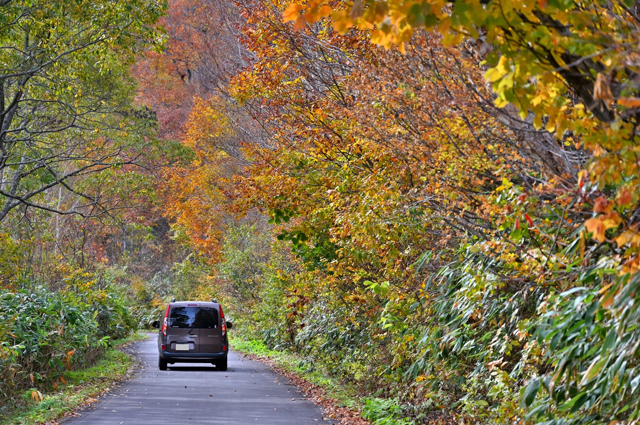 まだ薄暗かった登りとは違い陽が差して明るくなり、鮮やさが増した紅葉を眺めつつ山道を下っていきます。 野反湖を見下ろすいつもの撮影ポイントで立ち止まり撮影。 かなり霞んでいて雲も多めになってしまった。 その後は一気に下り国道18号線に出て長野県へと戻ります。 野反湖交差点にある「ナウマンゾウ親子像」 そして野反湖の湖畔の駐車場。 その後は県道504号線、97号線で斑尾高原を駆け抜け・・・ 国道292号線から国道117号線と走ります。 ![]() 「道の駅花の駅千曲川」に10時頃到着。 ![]() 今回もここの「カフェ里わ」で食事をしていきます。 店内はまだガラガラ。 席にある札を取ってレジにて注文し席にて待機。 配膳ロボット「里にゃん」が料理を持ってきてくれます(笑) アイスカフェラテ(500円)アイスカフェモカ(600円)タコライス(950円) ご飯の上にレタス、タコミート、温玉、トルティーヤチップス、チーズにトマトで、殆どの具材が地元産のものを使用しいます。 グリーディートースト(1150円) くり抜かれた食パンの中にスパイシーなカレー、チーズ、卵が入っていて、 付け合わせに温野菜、サラダ、ハム、そしてコンソメスープも付きます。 食後にマロンソフト(400円)も♪ 栗そのものというよりはスイーツとしてのマロンの風味でなかなかの美味しさ。 満足な食事を終えたところで直売所・お土産コーナーを見ていきます。 ![]() 店内は品数が豊富なこともあって結構な賑わいよう。 フルーツや野菜、お土産も購入したところで、今度は併設されている「mont-bell」へ。 結構広い売り場面積で商品もかなり多く売られています。 最近物騒なニュースが続いているので・・・ 熊鈴を購入(笑) 効果があるのか分かりませんが(苦笑) 道の駅を後にし国道117号線を少し走って右折し、千曲川を渡って県道38号線で野沢温泉方面へ。 ![]() 今回も野沢温泉には立ち寄らず、野沢温泉スキー場の脇を登っていきます。 ![]() もうじきスキー場のコースとなるこちらで野沢温泉や飯山方面を見下ろします。 更に少し上でも。 このすぐ先の定番スポットであるサンセットポイントにはバイカーがいたので撮りたいアングルで撮れず(苦笑) 奥志賀林道を走っていきます。 ここももうじきスキー場のゲレンデに。 スキー場内をクネクネと登ったこちらでも。 だいぶ登ってきたので段々と鮮やかな色付き具合に♪ いつ熊が出てきてもおかしくない雰囲気(汗) 実際に去年ここのすぐ近くで熊出没による被害がありニュースになっていました(汗) 熊鈴が効果を発揮してくれることを祈ります(笑) 何か音がするなと思ったらリフトが動いていました。 思っていたよりも良い色付きなこともありなかなか先に進まない(笑) キレイな景色が目の前に現れる度に立ち止まり、熊鈴を鳴らして警戒しつつ撮っています(苦笑) ここで後方からルノーカングーにお乗りのpr-sachiさんが! ![]() 軽く挨拶したところで先に行かれたが、またすぐにお会いしそうな気が・・・ 一旦奥志賀林道からそれて今回もカヤノ平へと向かいます。 Part3へ |